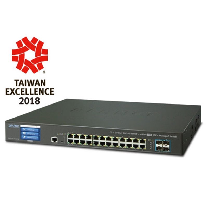 L2+/L4 24-Port 10/100/1000T + 4-Port 10G SFP+ Managed Switch with Color LCD Touch Screen, Hardware Layer3 IPv4/IPv6 Static Routing, ERPS Ring,?Cybersecurity features